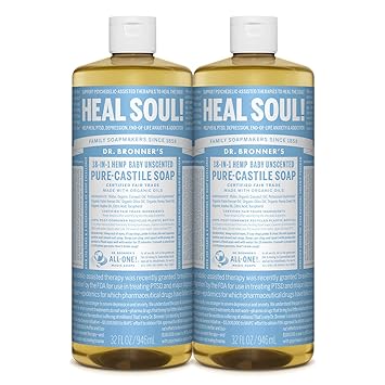 Amazon Com Dr Bronner S Pure Castile Liquid Soap Baby Unscented 32 Ounce 2 Pack Made With Organic Oils 18 In 1 Uses Face Hair Laundry And Dishes For Sensitive Skin And Babies No Added Fragrance