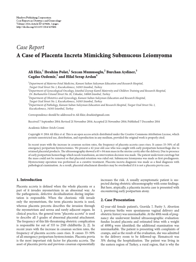 Case Report A Case Of Placenta Increta Mimicking Submucous Leiomyoma Childbirth Women S Health