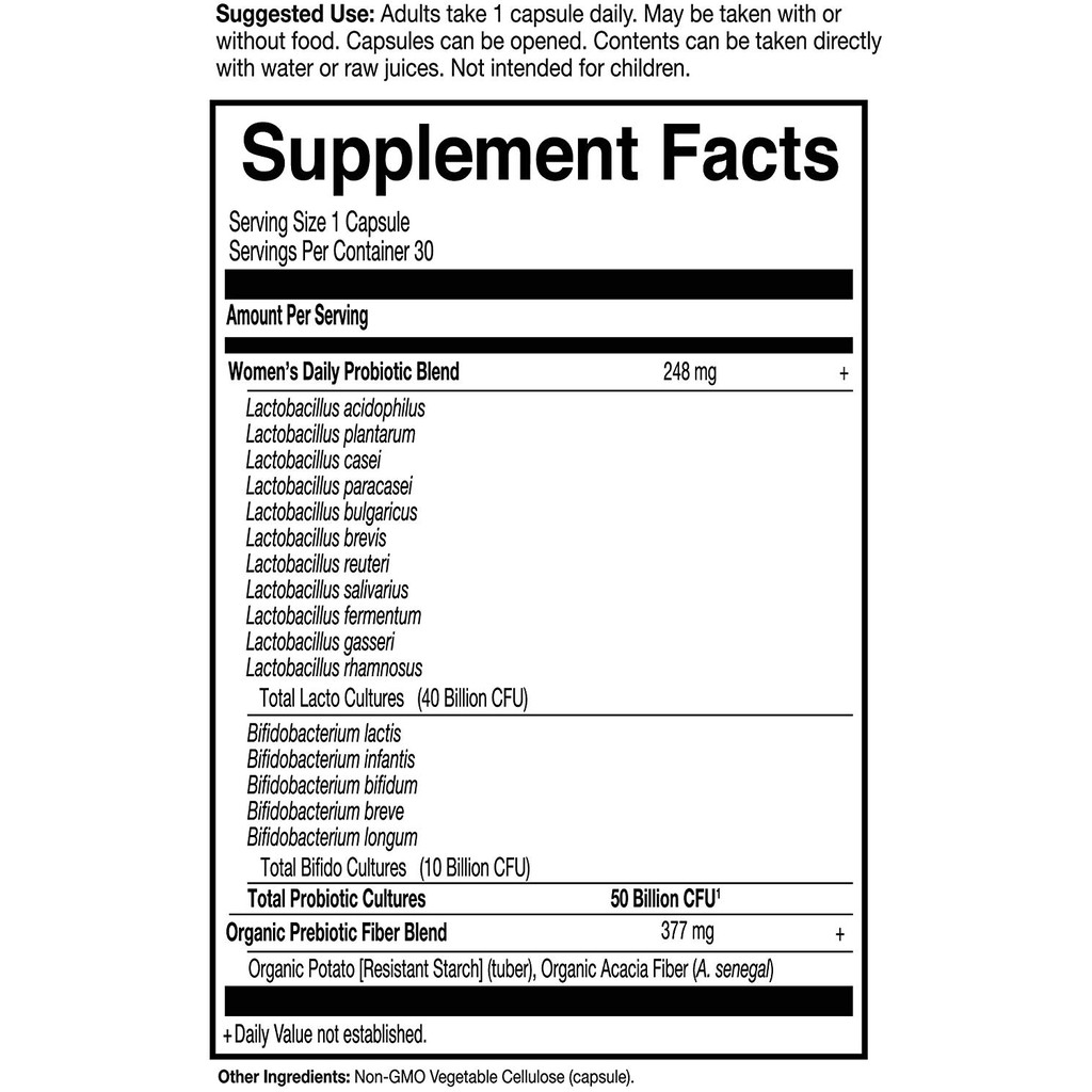 1 11 live cultures guaranteed through at. Formulated with shelf stability doesn t require refrigeration. 1 capsule per day servings included. Formulated probiotics once daily women s 50 billion cfu overall rating.