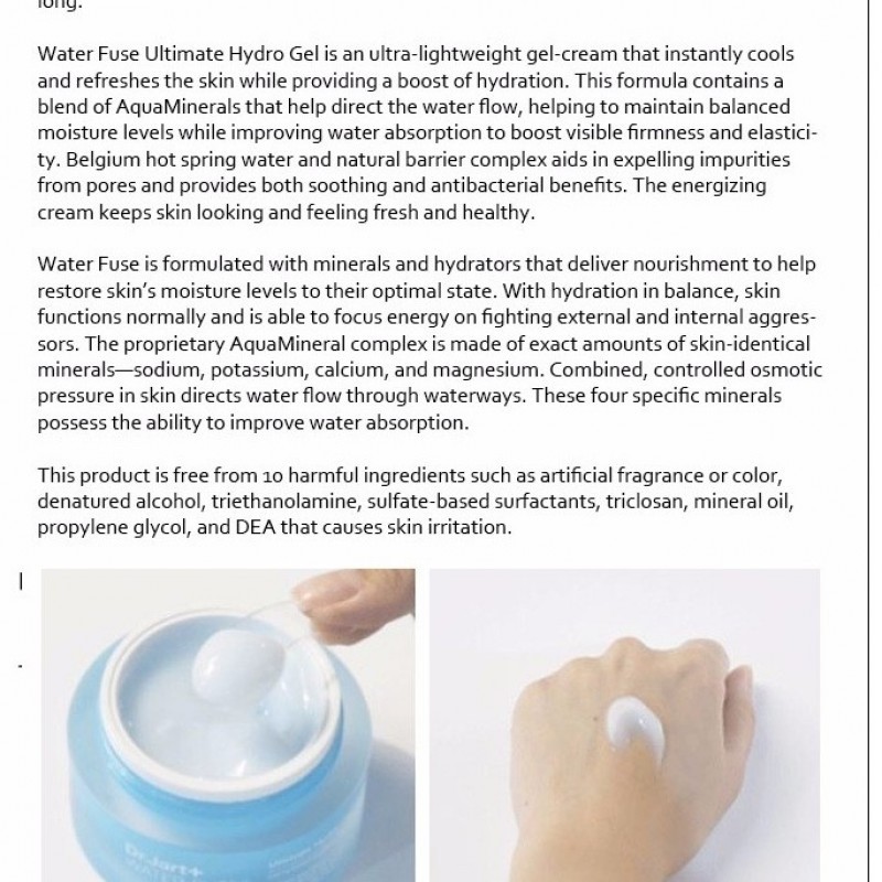 Dr jart water fuse ultimate hydro gel. The application feel doesn t match up to nr s cream. Account lists returns orders. Skip to main content in hello sign in. This gel cream instantly cools and keeps the skin radiant while also creating a water cushion to keep skin hydrated all day long.