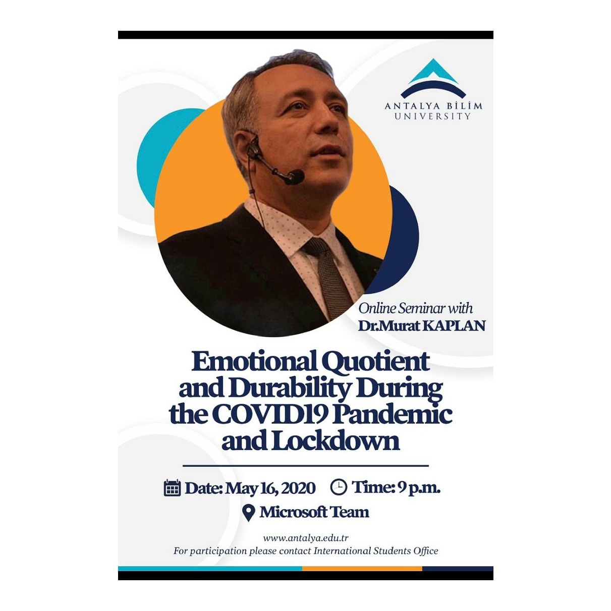 Antalya Bilim Universitesi On Twitter You Are Invited To An Onlineseminar On Emotionalquotient And Durability During The Covid19 Pandemic And Lockdown By Dr Murat Kaplan Director Of Sofl Date 16 05 2020 Saturday Platform Microsoft Teams E Mail