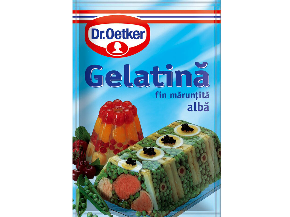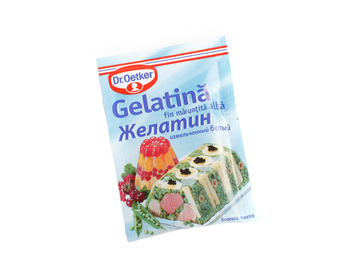 Dr oetker jelatin. This powdered gelatine is beef gelatine. Thin sheets of pure clear gelatin that dissolve well to produce an exceptionally clean product. Oetker vege gel a vegetarian alternative. Oetker gelatine sachets set 1 pint of liquid per sachet.