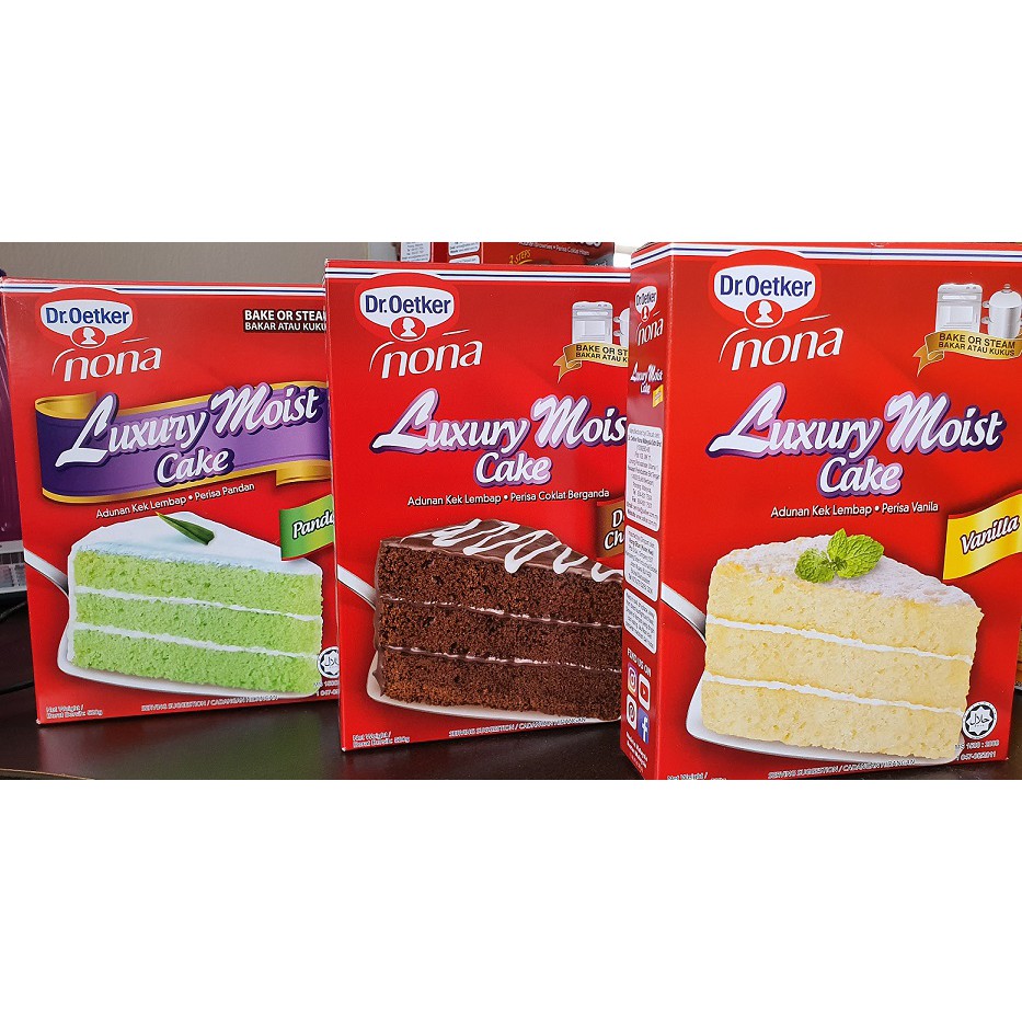 Nona Dr Oetker 520gm Luxury Moist Cake Pandan Double Chocolate Vanilla Premix Tepung Kek Segera Instant Shopee Singapore