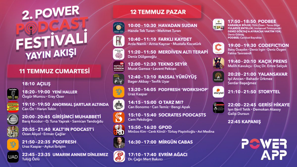 Power Fm Tv On Twitter Turkiye Nin En Buyuk Podcast Bulusmasi Power Podcast Festivali Nin 2 Si 11 12 Temmuz 2020 Tarihlerinde Powerapp Te Gerceklesecek Sizleri Kesfetmeye Denemeye Ve Dinlemeye Davet Ediyoruz Festival