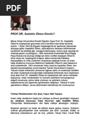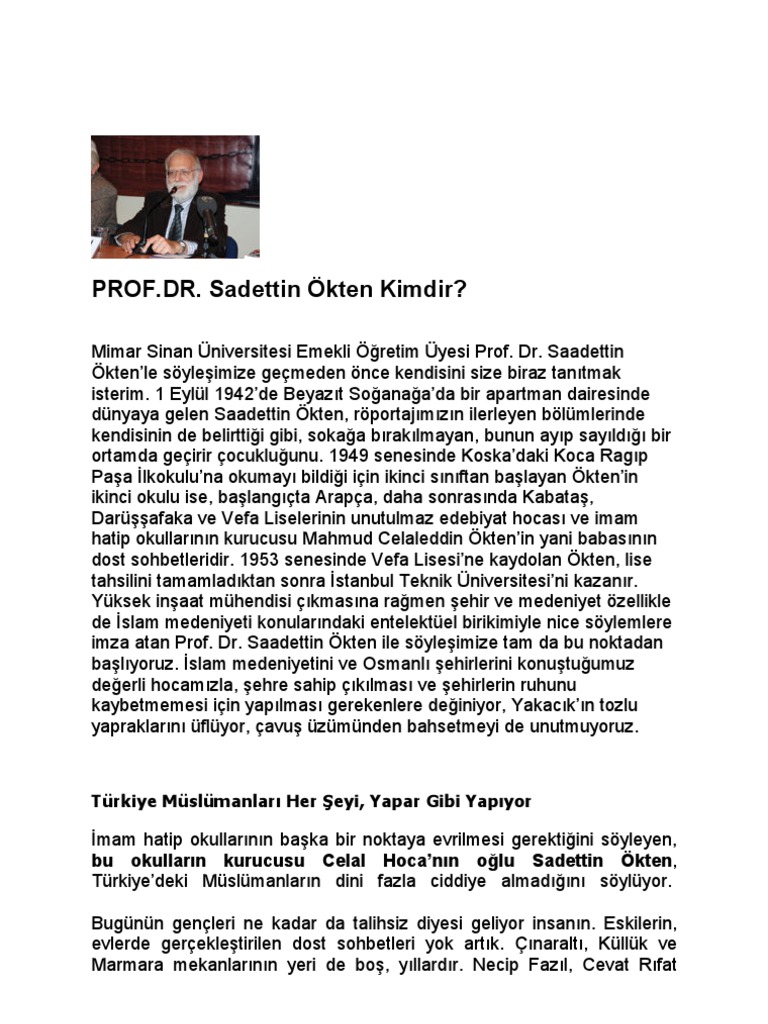 Prof Dr Sadettin Okten Kimdir Turkiye Muslumanlari Her Seyi Yapar Gibi Yapiyor